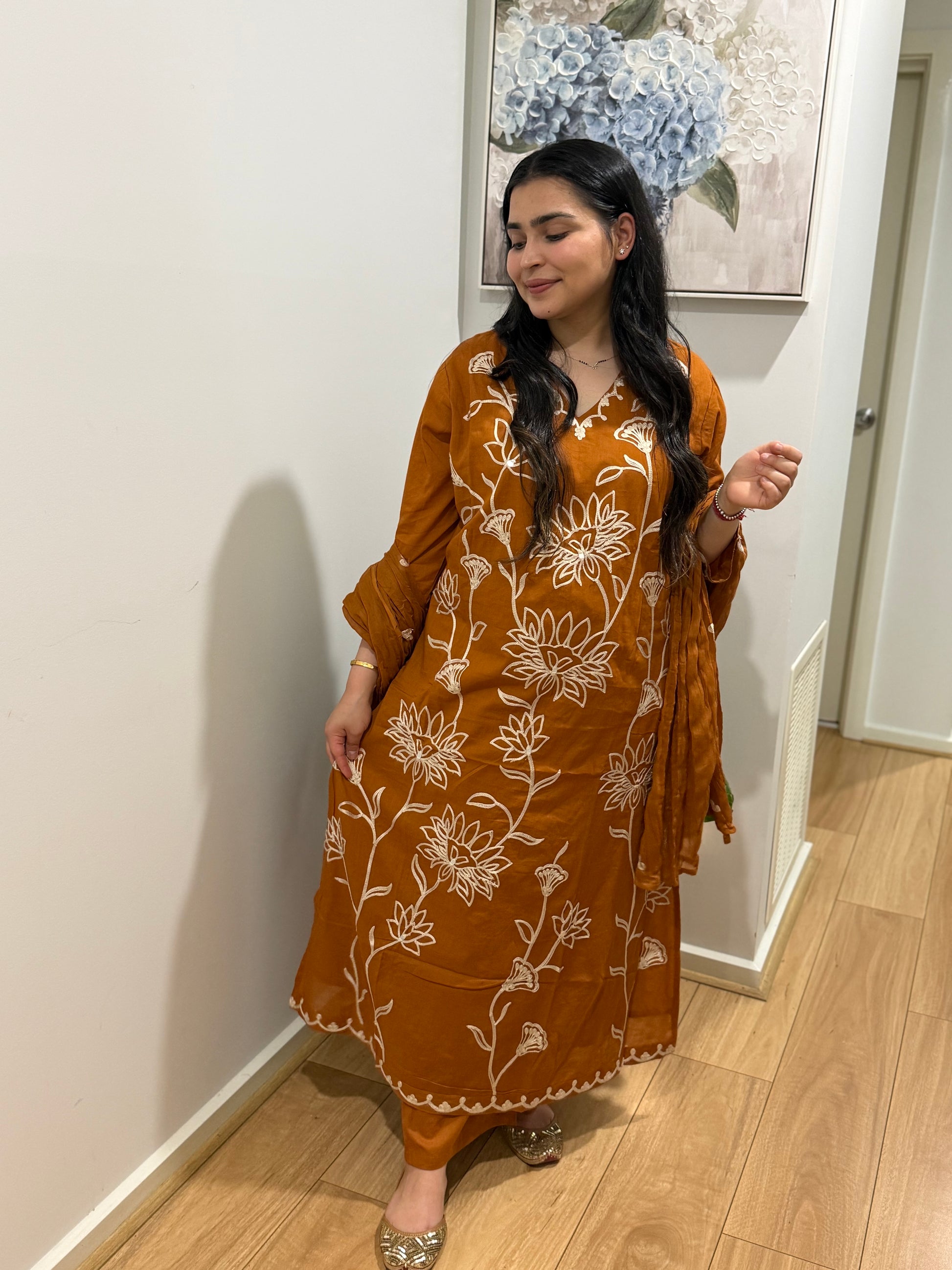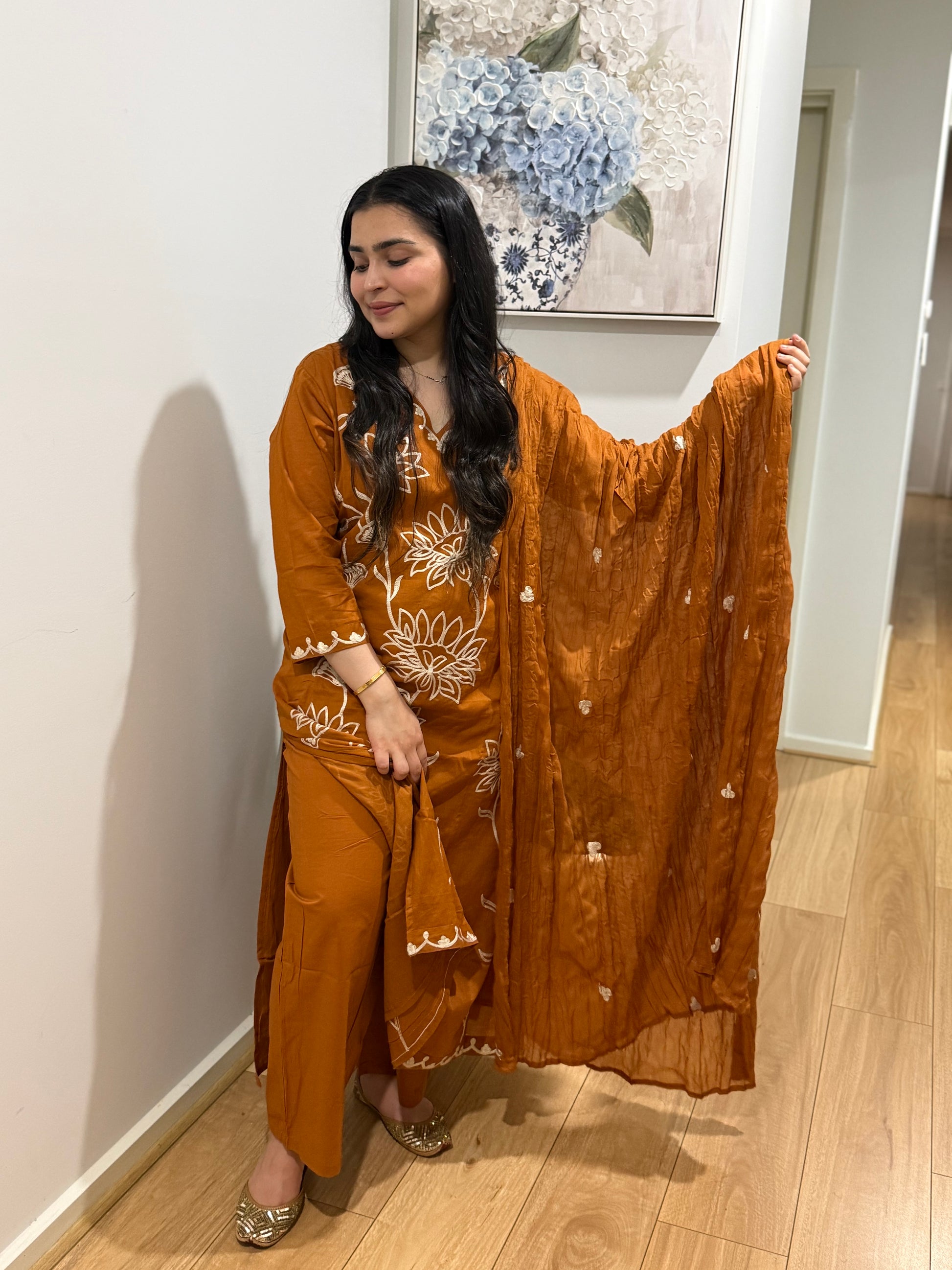 Premium quality mul cotton aline with lining and thread embroidery suit on the suit. Luxury mul cotton dupatta