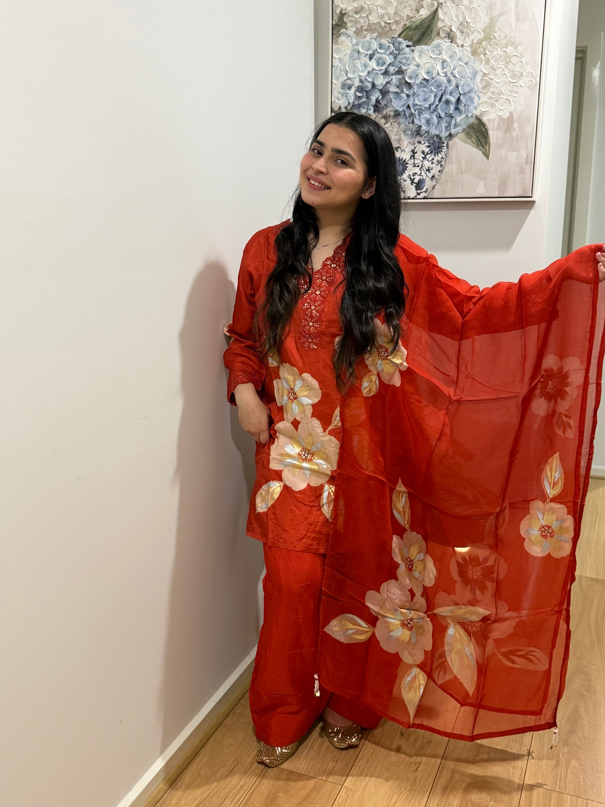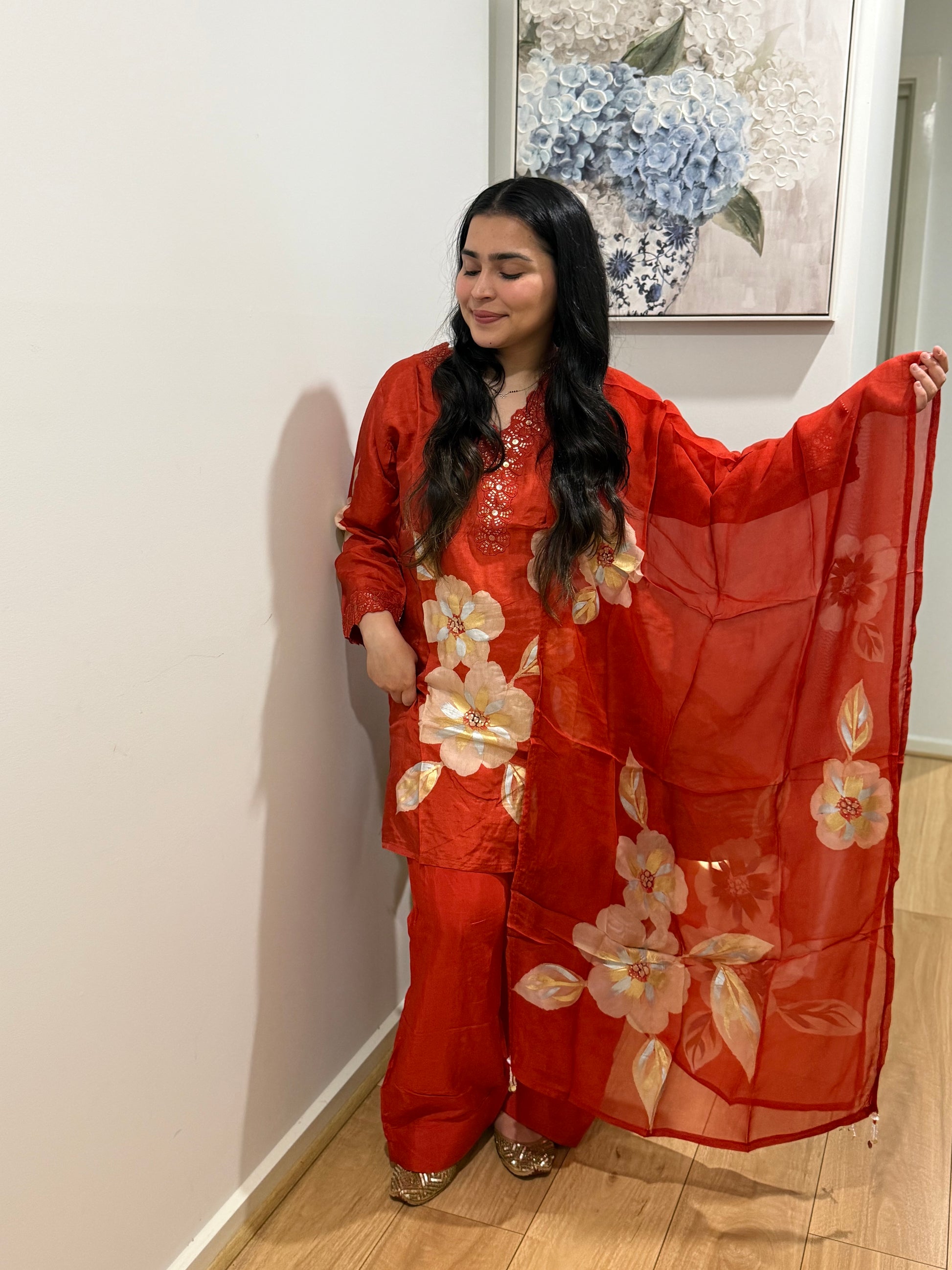 Premium quality silk suit with farshi salwar and tissue dupatta