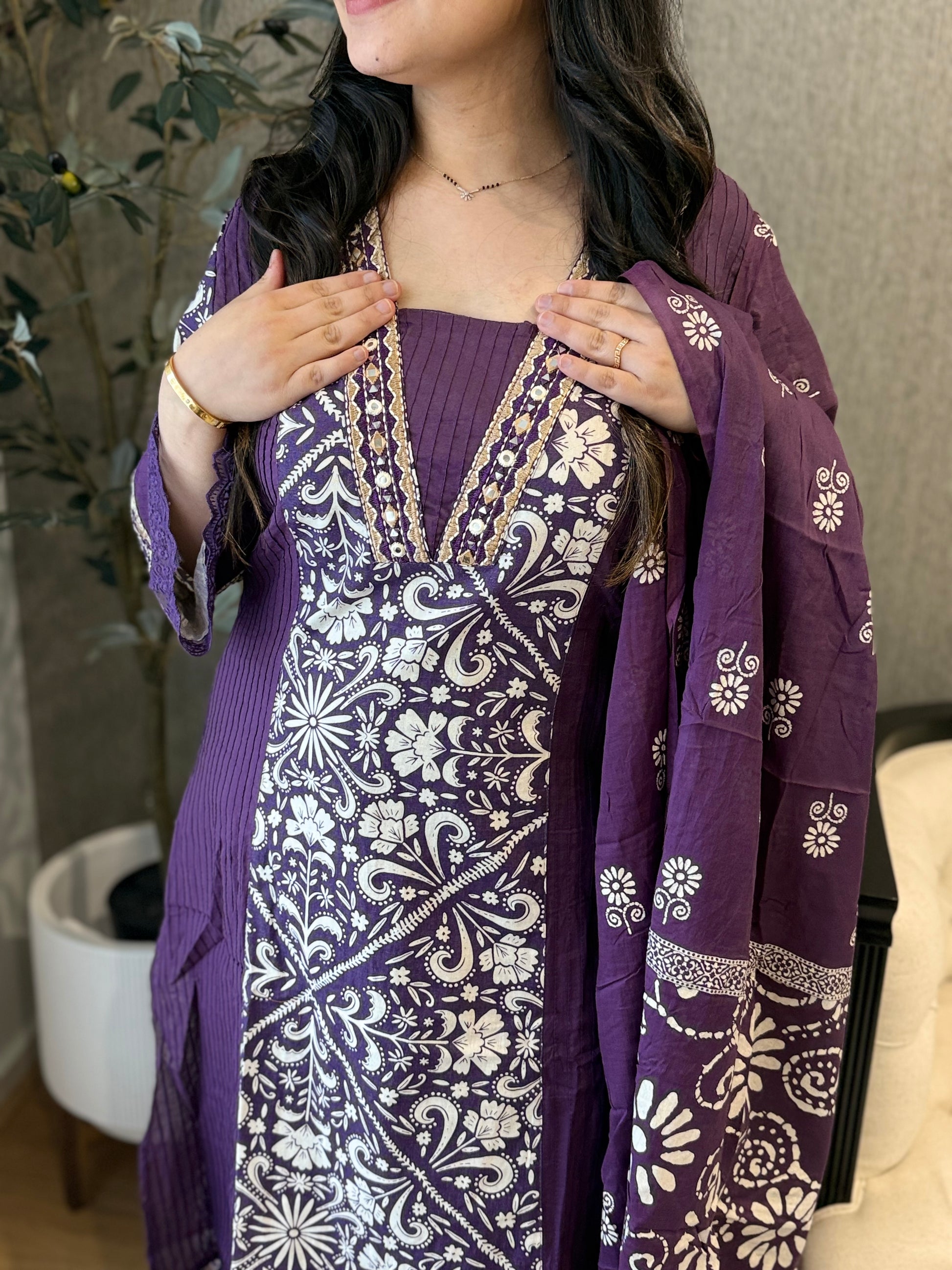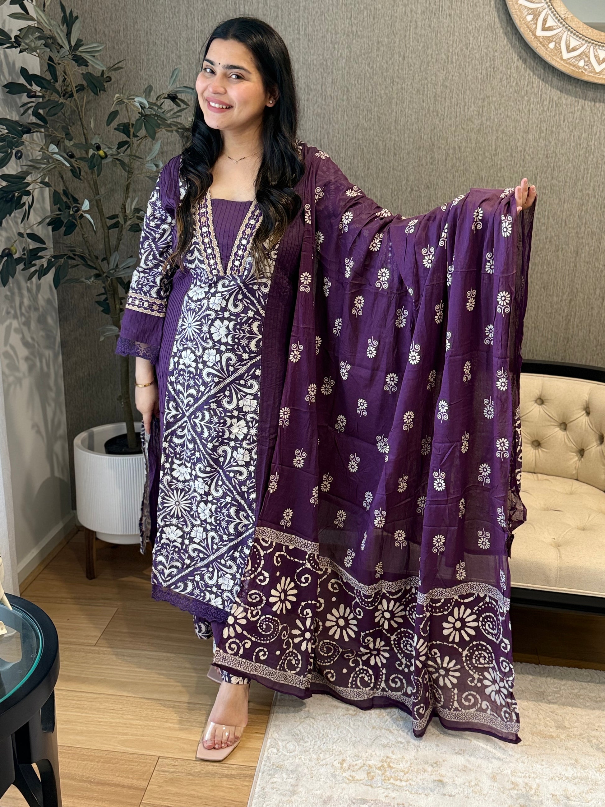 Premium quality ikkat printed cotton suit with dupatta and pants