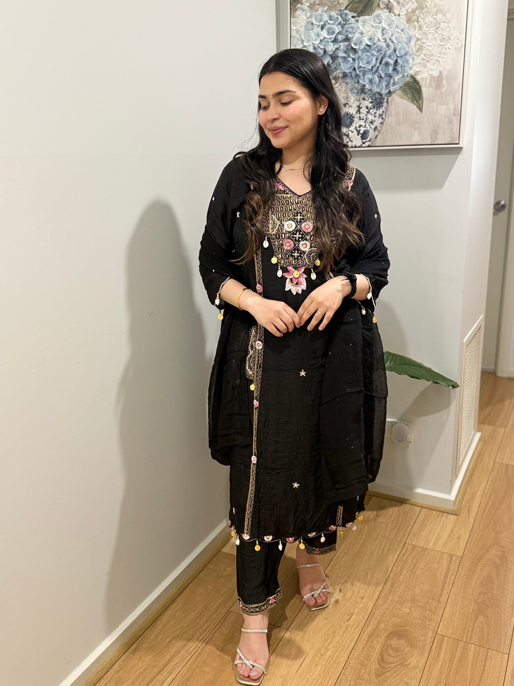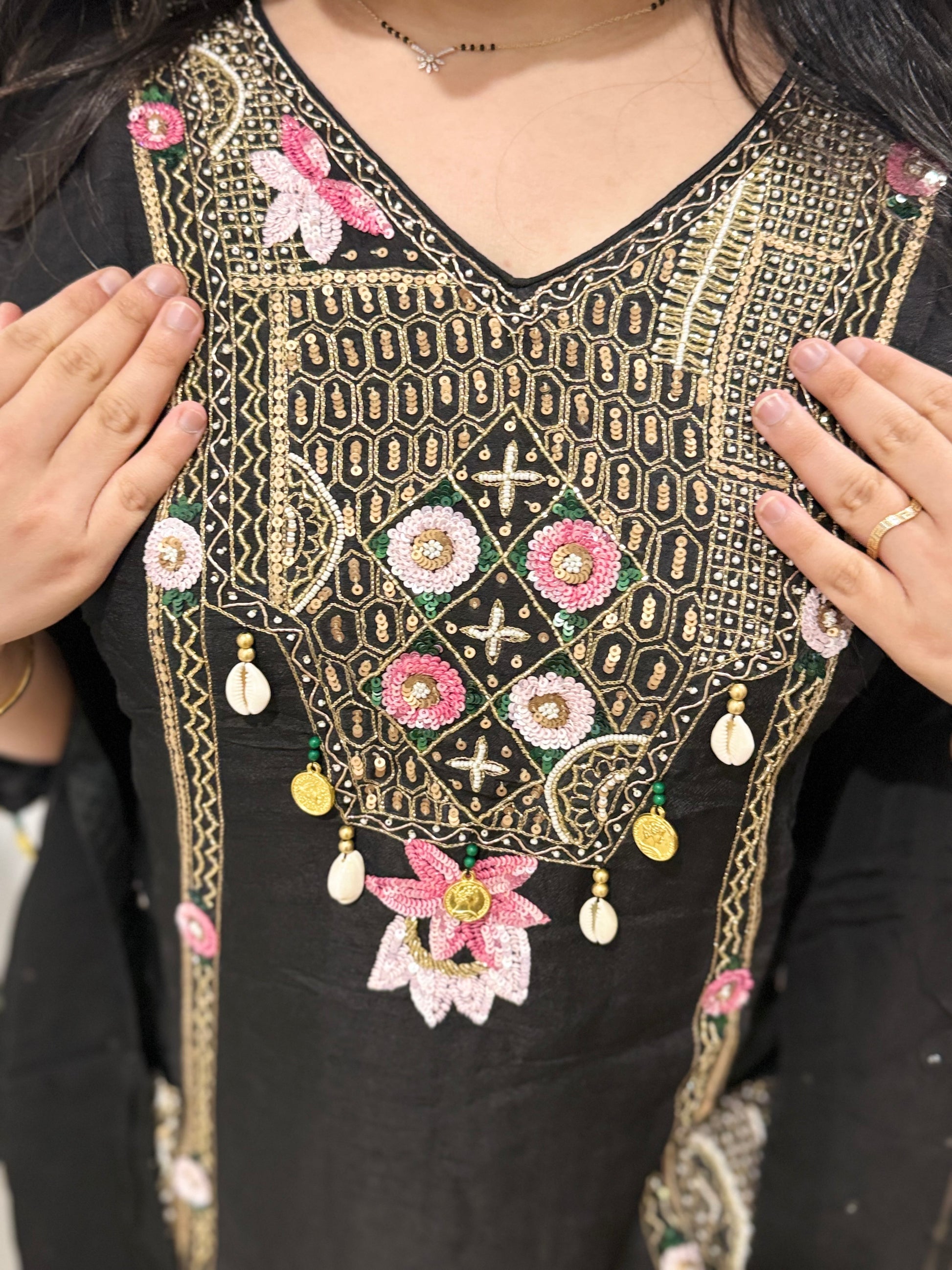 All handwork on the suit with zari and sequin work
