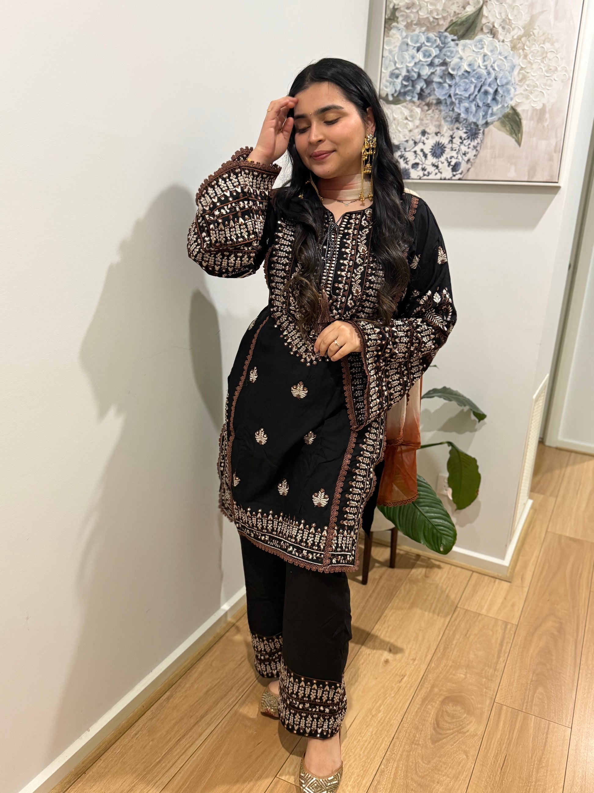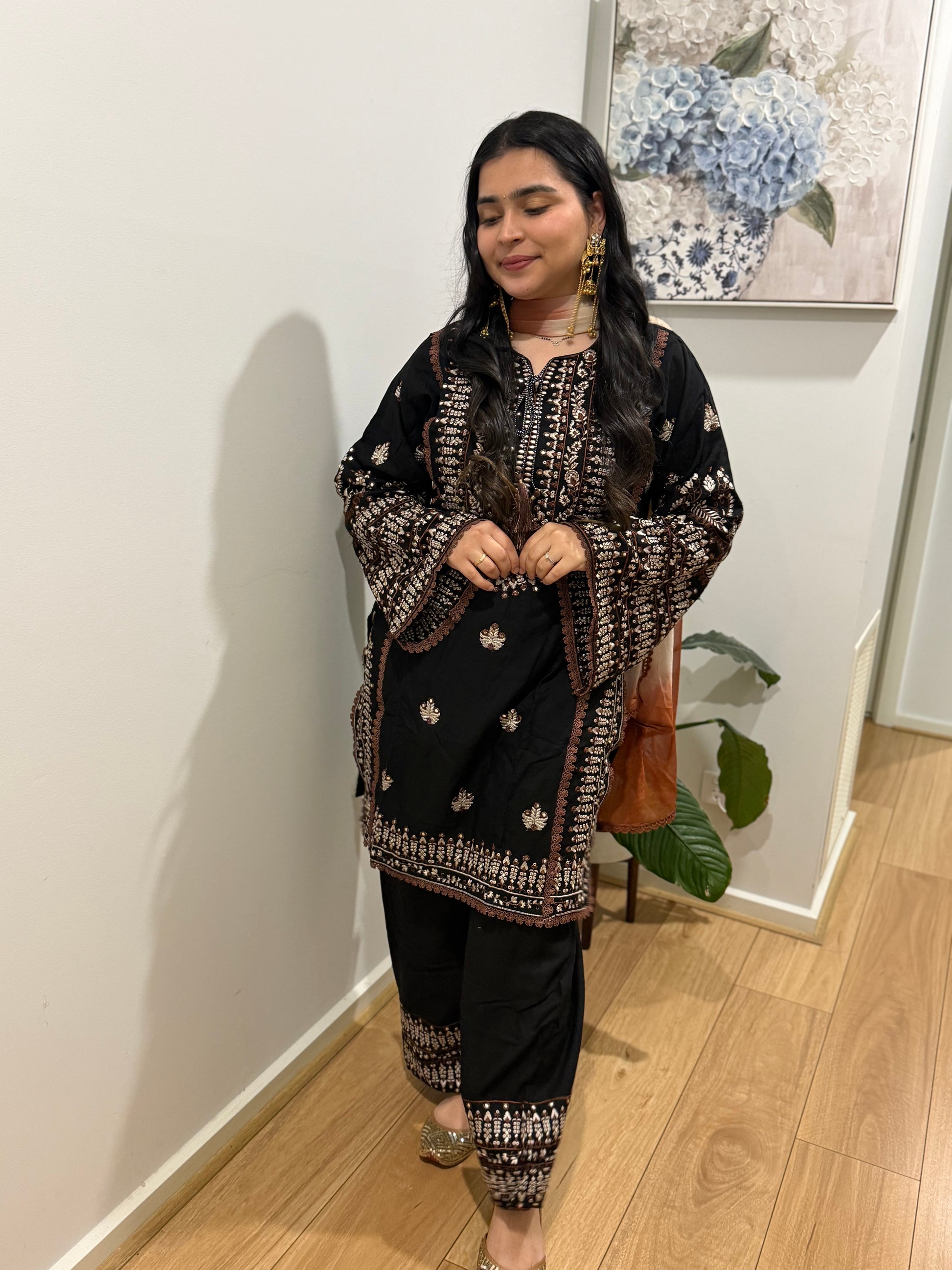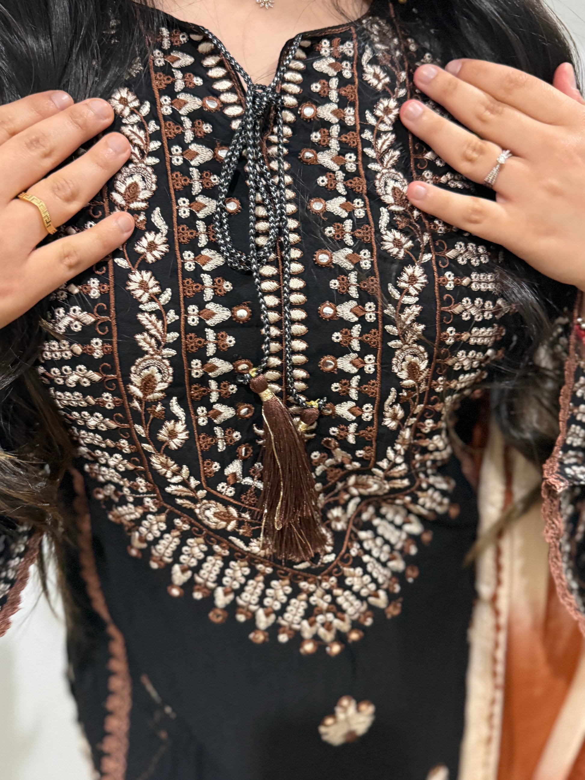 Rayon cotton suit with heavy embroidery, pants and dupatta