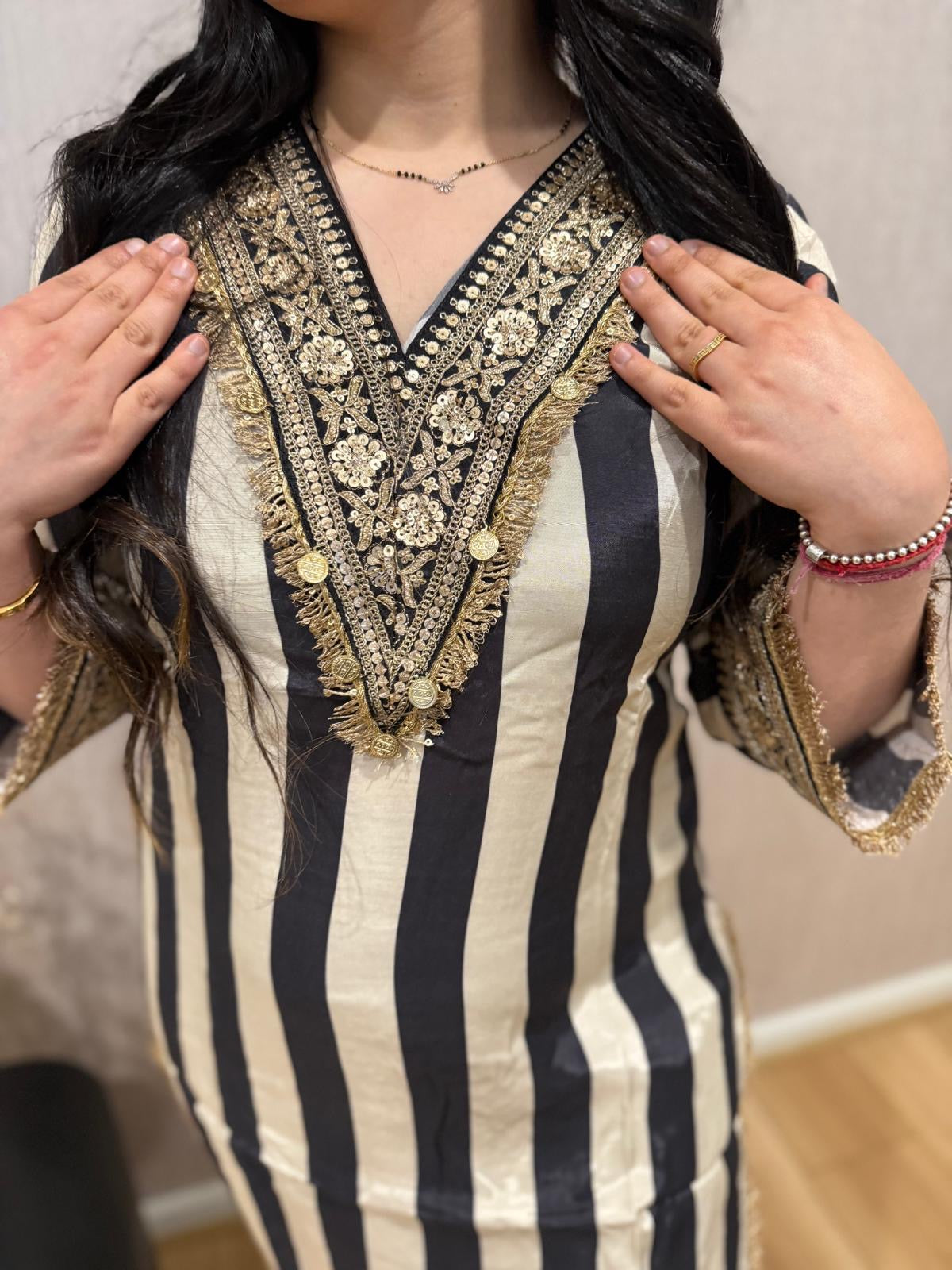 Premium quality luxury muslin coord with lace work and straight pants