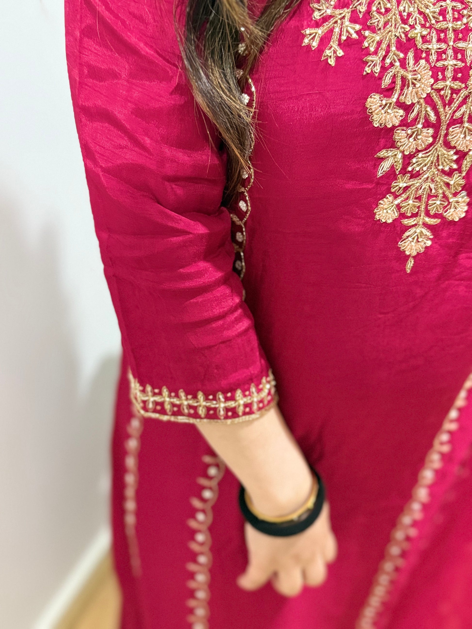 All handwork on the suit with zari and sequin work