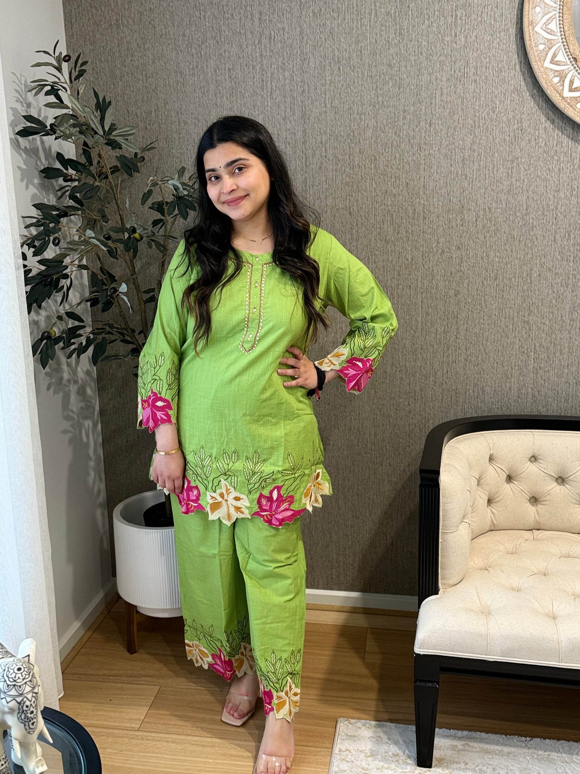 Premium quality printed cotton coord with scalloped sleeves and pants
