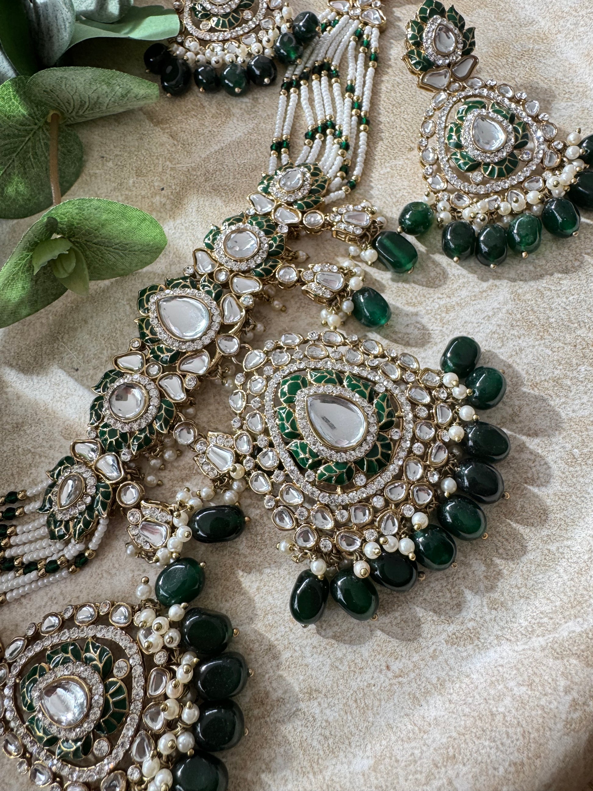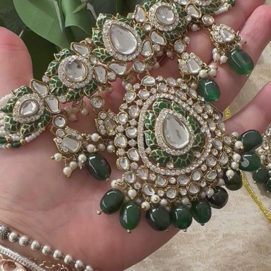 Premium Quality Kundam choker with earrings and tikka